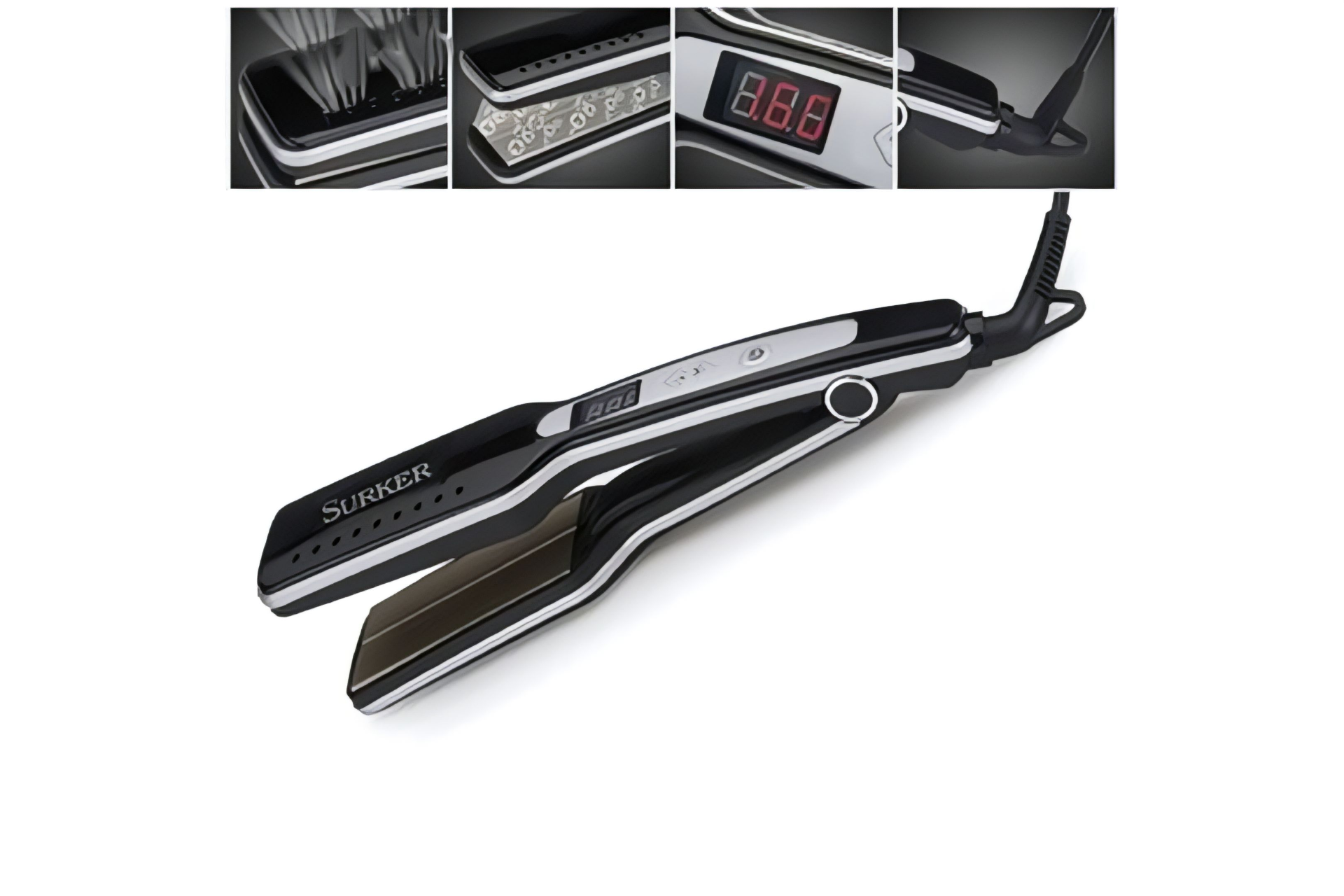 اتو مو سورکر surker مدل «HD-913» دارای صفحات پهن و صفحهنمایش دیجیتال است. عرض صفحات اتو مو 4.5 سانتیمتر و طول آنها 10 سانتیمتر است که این دستگاه را در دستهی اتو موهای با صفحات عریض قرار میدهد و برای موها بلند و پرپشت مناسب است. جنس این صفحات از سرامیک است و آسیب کمتری به مو وارد میکند. قابلیت ویژه این اتو مو استفاده بهصورت خشک و مرطوب است. رطوبت روی موهای خیس پس از تبخیر شدن، از سوراخهای روی صفحهی بالای خارج میشود. در ساخت این اتو مو از فناوری یونی استفاده شده که موجب نشاندن یونهای منفی روی موها میشود. استفاده از این فناوری ضمن اینکه باعث نرمی و براقیت بیشتر موها میشود، با حفظ رطوبت موجب آسیب کمتر به موها میشود. گرم شدن صفحات به کمک سیستم PTC به کار رفته در اتو مو با سرعت بالایی انجام میشود. برای روشن کردن اتو مو باید دکمهی خاموش/روشن را نگه داشت. با روشن شدن اتو مو، درجه حرارت تنظیمشده روی صفحهنمایش داده میشود و صفحات شروع به گرم شدن میکنند. این دما تا رسیدن به دمای موردنظر به شکل چشمکزن باقی میماند. علاوه بر این دمای لحظهای نیز روی صفحه، نمایش داده میشود. برای تغییر این دما باید از دکمههای مثبت و منفی استفاده کرد. با فشردن این دکمهها، دما 5 درجه کم یا زیاد میشود. محدوده دمای قابل تنظیم صفحات بین 80 تا 230 درجهی سانتی گراد است. در انتهای بدنه دکمهی قفلکردن صفحات وجود دارد که به کمک آن میتوان هنگام جابجایی صفحات را روی یکدیگر قفل کرد. سیم برق در محل اتصال به بدنه حالت چرخشی دارد که استفاده از اتو مو راحتتر میکند. به طور خلاصه surker HD-913 دارای صفحات پهن با روکش سرامیک، صفحهنمایش دیجیتال، قابلیت استفاده به صورت خشک و مرطوب، فناوری یونی و دمای قابل تنظیم از 80 تا 230 درجهی سانتی گراد است.
